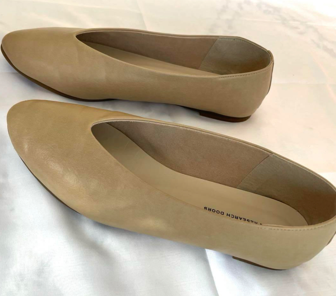足のひとさし指が一番長いので、ポイントトウのこのフラットを選びました。色は思ったより落ち着いていて、値段なりの見た目ですが満足。生地の伸びがよくて窮屈さゼロ。クッションがよく、足を包むようなフワフワ感が気持ちいいです。